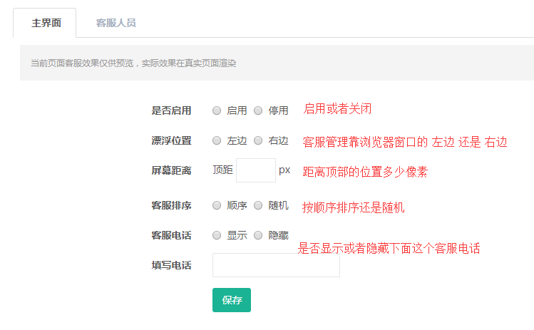 配置我們這個站點的客服,可以控制是否啟用。使用方法入下圖