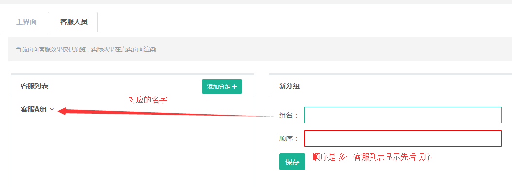 每個客服列表都可以添加客服人員。