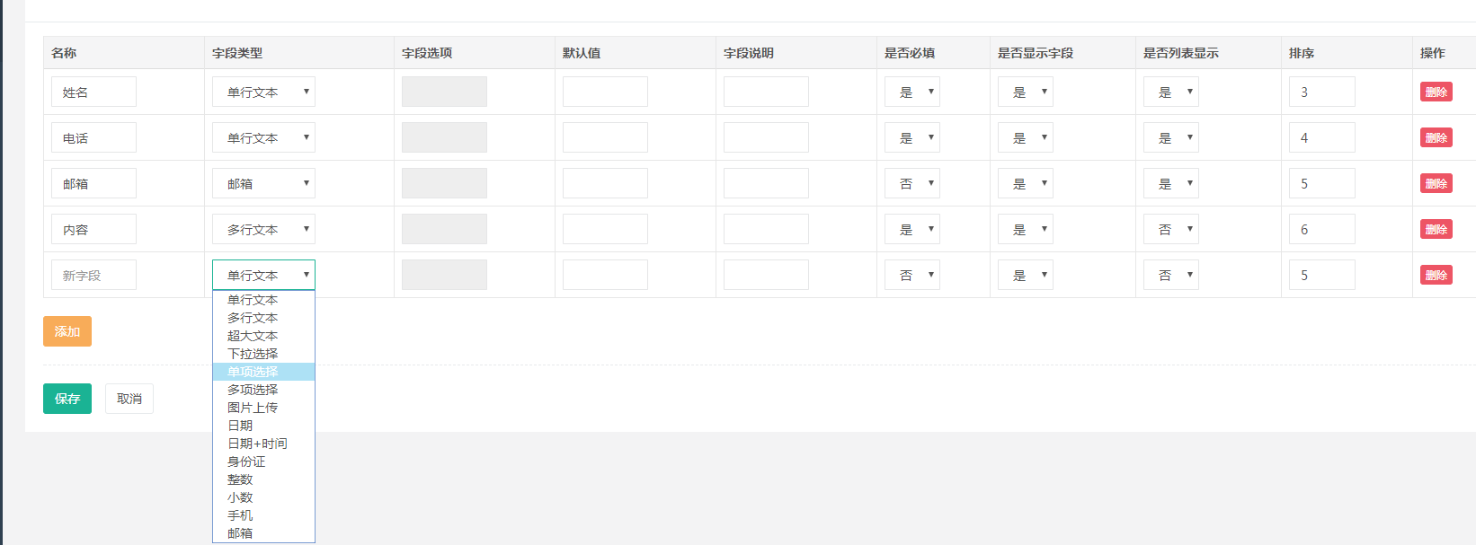 表單字段設(shè)置,您可以自己自定義表單字段,可以設(shè)置先后順序,配置相應(yīng)的字段等等。