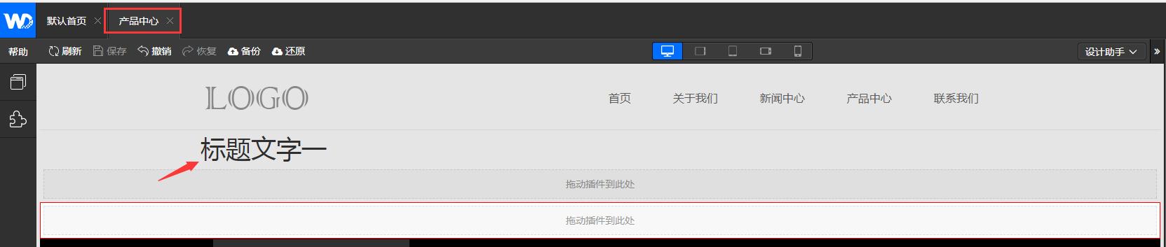 我對功能頁面的產品中心進行編輯,添加一個標題插件。