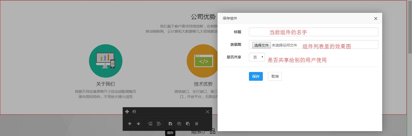 當我們自己做好的,在制作頁面中經常用到一塊區域,就可以將這一塊保存到組件里去,方便下次直接拉出來使用,不需要重新制作。