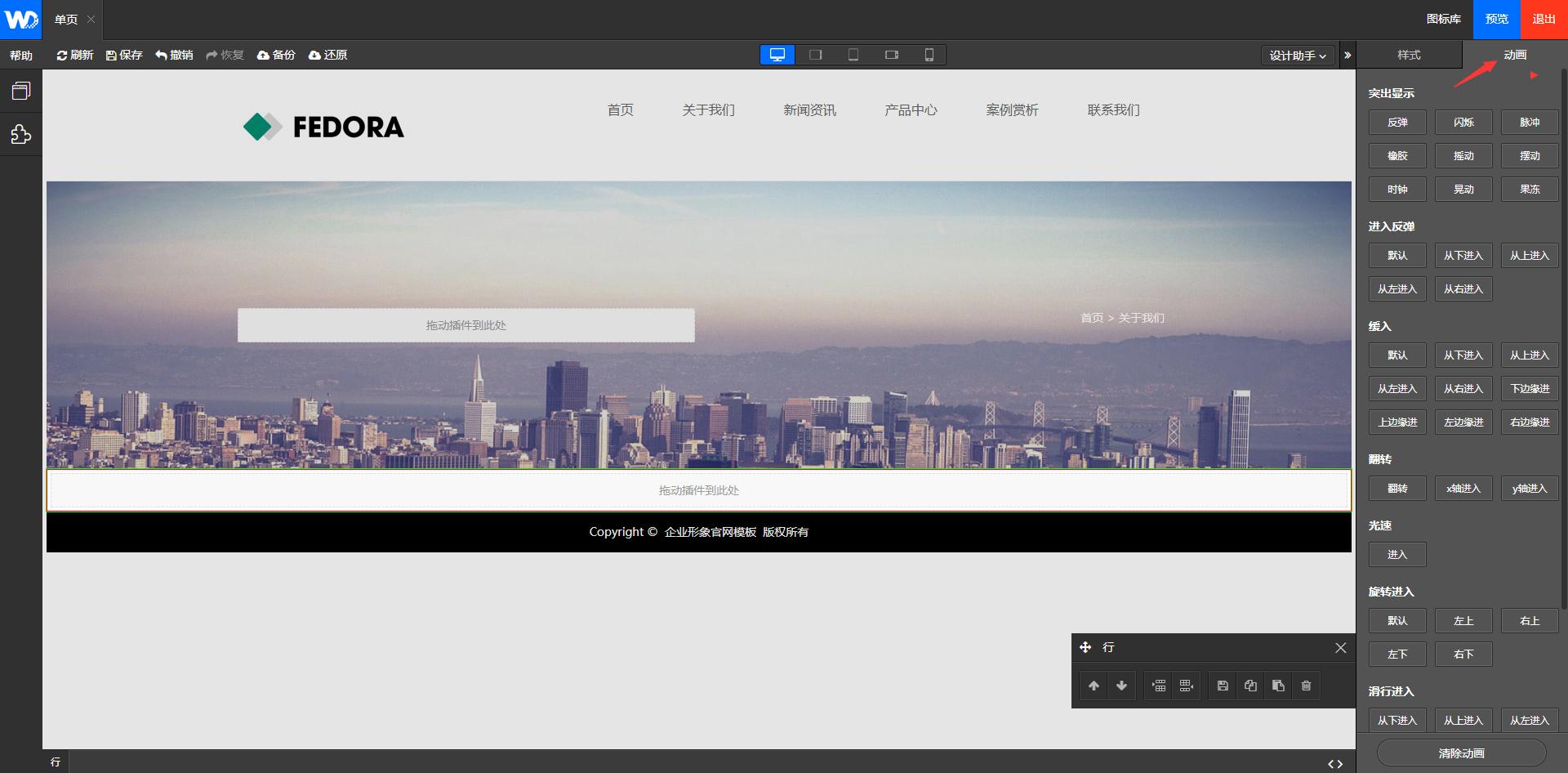 對選中行設置了動畫,編輯器界面自動展示出動畫的效果